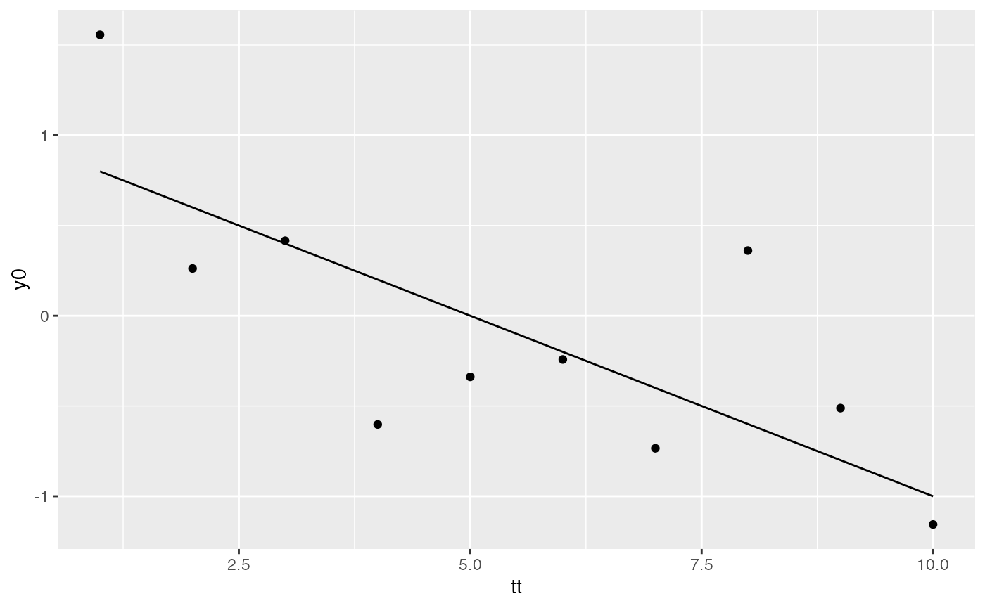 pt0 <- ggplot(data=dat) + geom_point(aes(tt, y0))